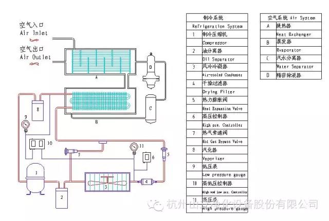 降低壓縮空氣的溫度可減少壓縮空氣中的水蒸氣含量,而多余的水蒸氣會(huì)凝結(jié)成液體,再把液態(tài)水除去,從而使壓縮空氣達(dá)到干燥的效果。冷干機(jī)就是利用這一原理來(lái)工作的。