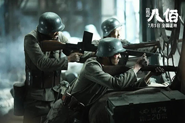 電影《八佰》根據(jù)1937年淞滬會戰(zhàn)期間“八百壯士”抗擊日軍的故事改編而成。該電影講述了國民革命軍第88師524團(tuán)留守在上海與租界一河之隔的四行倉庫,孤軍奮戰(zhàn)四晝夜的故事。駐守四行倉庫的將士總共四百余人,但為了壯大聲勢,便對外宣稱800人。一傳十,十傳百,便成了“八百壯士”。他們死守四天四夜,殲敵200余人,為了國家,為了民族,堅守四行倉庫以血肉之軀阻擊日軍的進(jìn)攻。他們用自己的智慧、自己的生命,譜寫了一曲又一曲壯麗的戰(zhàn)歌,撼醒了一群群膽小怕死的、一城麻木不仁隔岸觀火國人的愛國之心和國際人士的正義之感,展現(xiàn)了中國軍人視死如歸、殊死拼搏的意志。