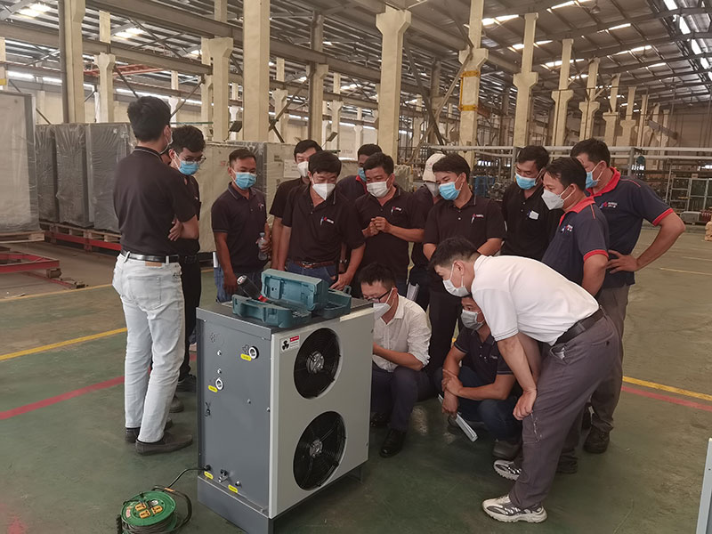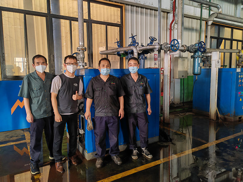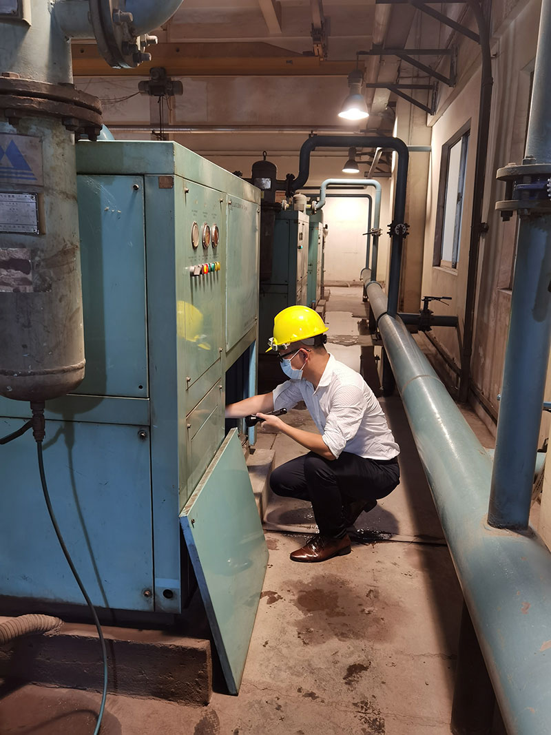 從河內到胡志明市,再從胡志明經10幾個小時的周轉到達熱電廠項目地,現場20多臺我司設備,有的已長達10年機齡,轟隆隆的在悶熱陳舊的機房里運轉,我們的服務工程師從顯示屏露點、溫度等數據再到閥門、壓縮機、末端含水量、電排等一一進行檢修,確保電廠能夠穩(wěn)定和高品質地用氣。等所有設備檢修完畢,服務工程師早已汗流浹背。