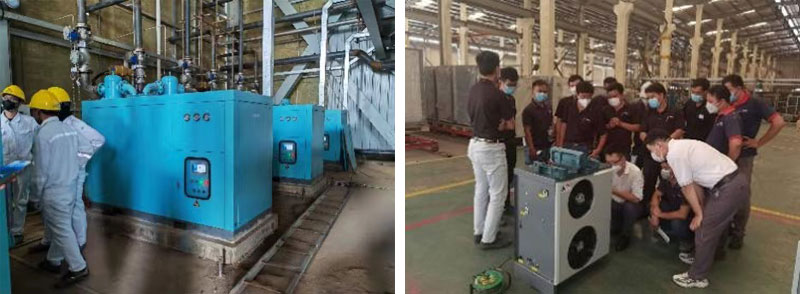 泰國某橡膠廠:該項目是我司優(yōu)質(zhì)代理商配套項目,現(xiàn)場總共三期,全部使用我司后處理設(shè)備;客戶通知我司現(xiàn)場有一臺冷干機,一開機就高壓保護,無法正常使用;經(jīng)過我司售后工程師的探討分析和現(xiàn)場試驗得知是因客戶冷卻水安裝不合理造成,經(jīng)更改管路后得到解決,后續(xù)又對現(xiàn)場所有設(shè)備做全方位檢查以及現(xiàn)場人員培訓(xùn);此后我司售后人員又陸續(xù)對現(xiàn)場進行跟蹤回訪,近兩年設(shè)備一直穩(wěn)定運行,客戶對我方售后人員專業(yè)度非常滿意。