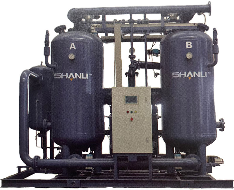 充分利用空壓機(jī)壓縮氣體中產(chǎn)生的熱量去再生吸附劑,降低了再生能耗,同時采用特殊的吸附劑配比方式,使性能表現(xiàn)更佳。