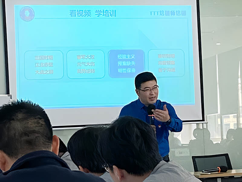 老師在培訓(xùn)一開(kāi)始就給學(xué)員們播放了曹操赤壁之戰(zhàn)的視頻,以此來(lái)緩解整個(gè)會(huì)場(chǎng)中的緊張感,并通過(guò)提問(wèn)和搶答激發(fā)了學(xué)員們的好勝心,將學(xué)員們的積極性調(diào)動(dòng)到了頂峰。這就是老師說(shuō)的"有限時(shí)間,有效訓(xùn)練"。