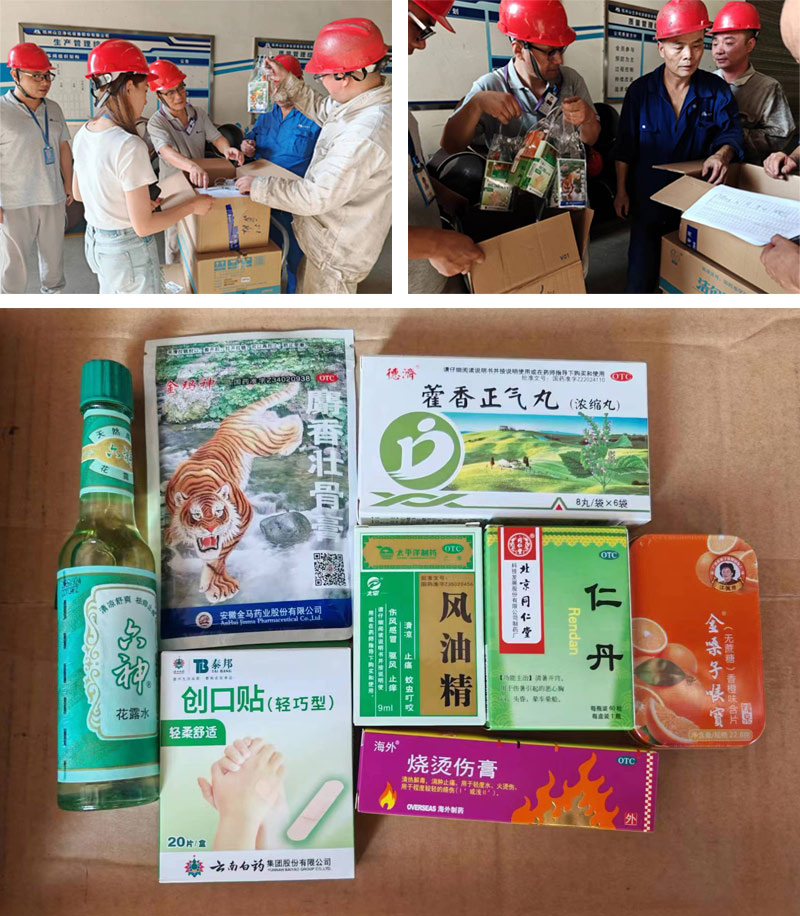 公司工會(huì)主席劉總為車(chē)間員工發(fā)放了藿香正氣丸、風(fēng)油精、燙傷膏等慰問(wèn)禮盒,并叮囑大家做好高溫作業(yè)個(gè)人防護(hù)工作,關(guān)注自身健康、確保自身安全。