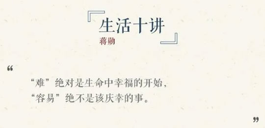 《生活十講》選取生活中的十個(gè)側(cè)面:價(jià)值、官學(xué)、倫理、信仰、物化、創(chuàng)造力、文學(xué)力、愛與情、情與欲、新食代,借用生活中的點(diǎn)點(diǎn)滴滴,反映文化的本質(zhì)。這些內(nèi)容都是我們?cè)谏钪忻媾R到的,倫理價(jià)值信仰愛情,關(guān)乎到人的精神生活。蔣勛娓娓道來,文辭優(yōu)美,直指本質(zhì),悲憫卻并不憂傷。在這個(gè)問題迭出的時(shí)代,相信這本書能帶來一股發(fā)自內(nèi)心、溫暖而堅(jiān)定的力量。