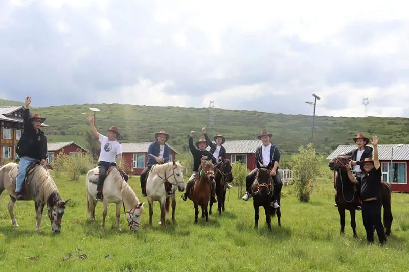 欣賞了如畫的山水,再來感受一下遼闊的濕地草原風(fēng)光。天空湛藍(lán)深遠(yuǎn),云朵潔白無瑕,我們騎著馬、唱著歌,仿佛縱情享受著草原帶來的五彩斑斕。