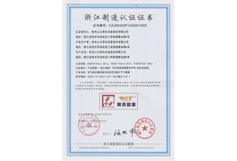 2023年4月,杭州山立成功獲得浙江制造認(rèn)證證書,此次認(rèn)證通過,是對(duì)杭州山立產(chǎn)品質(zhì)量的肯定。