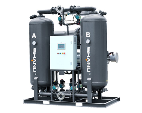 采用鼓風機抽取環(huán)境空氣,經(jīng)過加熱后去再生吸附塔的干燥劑,避免了微熱再生吸附式干燥器在加熱階段的耗氣損失,只是在冷吹階段采用一小部分成品氣,因此整體耗氣量小,特別適用于要求再生耗氣量小的場合。同時由于鼓風熱吸附式干燥器在在加熱再生時無耗氣,更大程度地節(jié)約了能量。